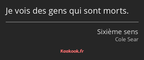 Il ne faut pas avoir peur d'eux, c'est normal d'être effrayé, on ne sait pas qui c'est, on ne connait rien d'eux et on les voit. Réplique sixième sens sur gens. Ils veulent voir si je peux les aider à s'améliorer.